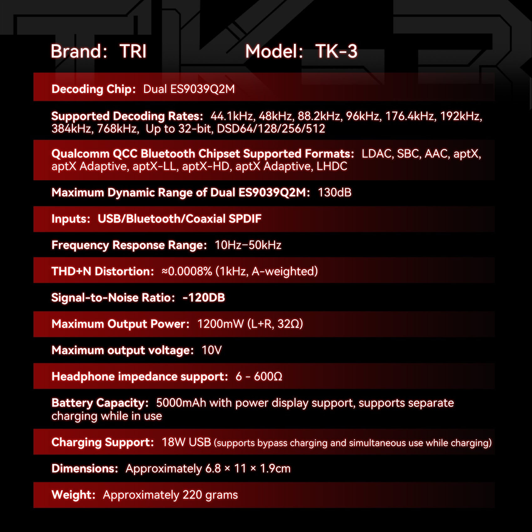 TRI TK3 Multi-functional Portable Audio DAC & Headphone Amplifier