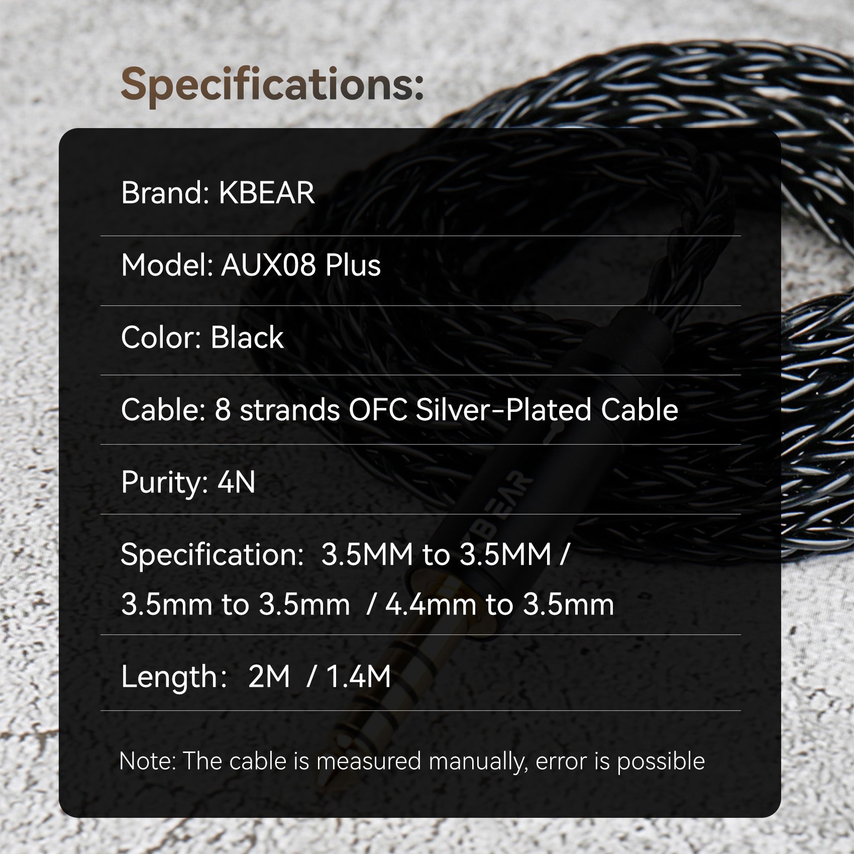 Versions | 4.4mm to 3.5mm/2M, 4.4mm to 3.5mm/1.4M, 3.5mm to 3.5mm/2M, 3.5mm to 3.5mm/1.4M, 3.5mm to 2.5mm/2M, 3.5mm to 2.5mm/1.4M |
