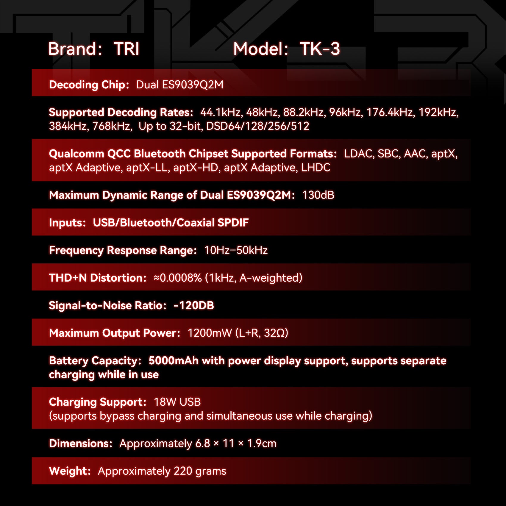 TRI TK3 Multi-functional Portable Audio DAC & Headphone Amplifier