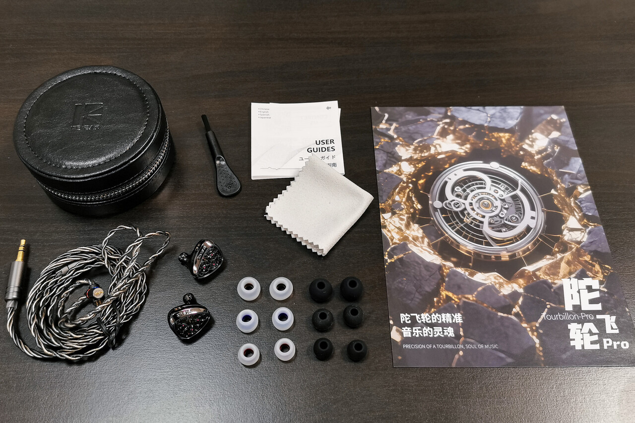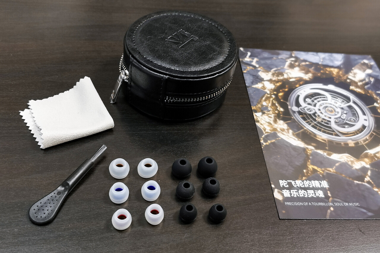 パッケージ内容は、イヤホン本体、ケーブル、イヤーピースが2種類でそれぞれS/M/Lサイズ、アートカード、クリーニングブラシ、クリーニングクロス、レザーケース、説明書。